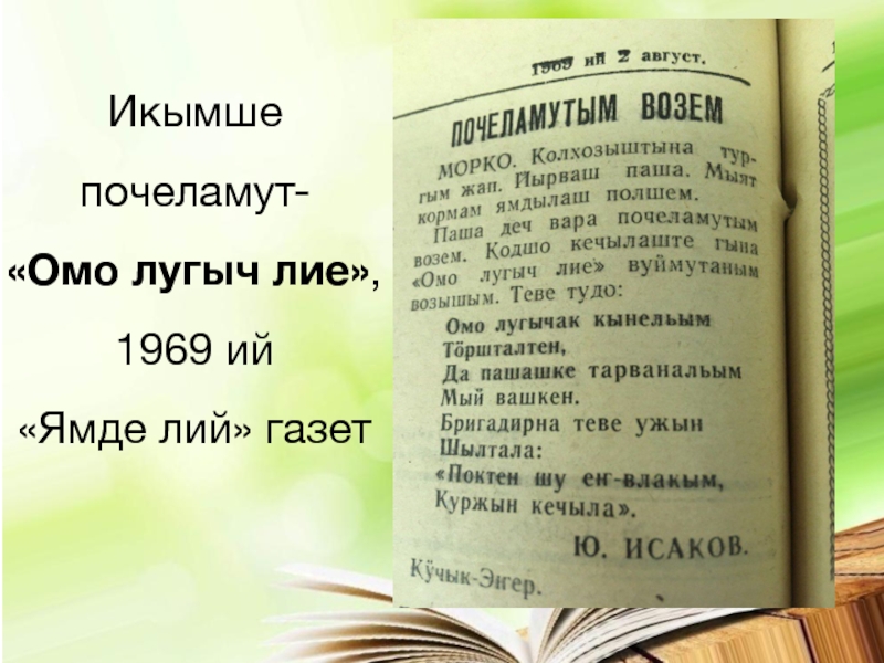 Икымше почеламут-«Омо лугыч лие»,1969 ий «Ямде лий» газет