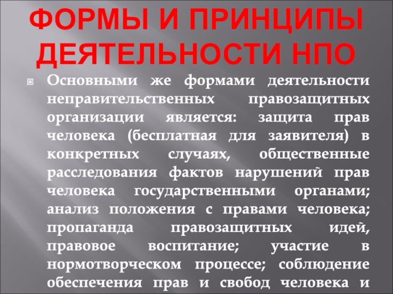Слайд 20ФОРМЫ И ПРИНЦИПЫ ДЕЯТЕЛЬНОСТИ НПО
