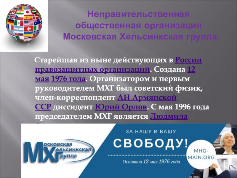 ныне действующих в России правозащитных организаций. Создана 12 мая 1976 года. Организатором и