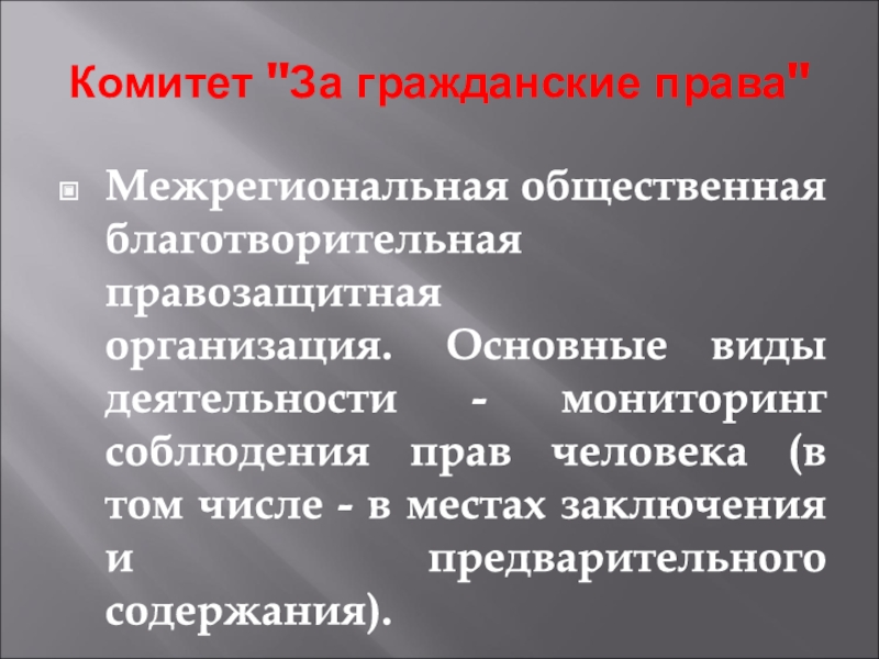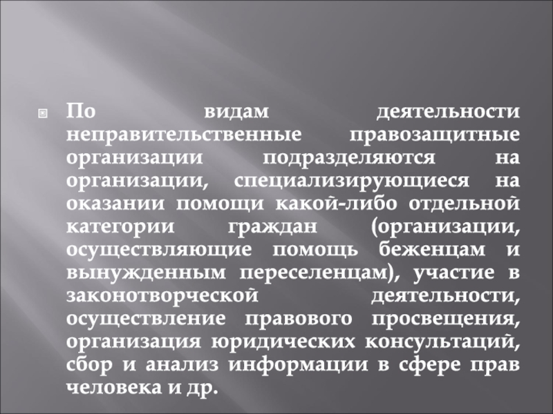 Межрегиональная общественная благотворительная правозащитная организация. Основные виды