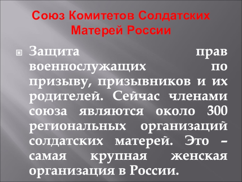 Слайд 79Союз Комитетов Солдатских Матерей России