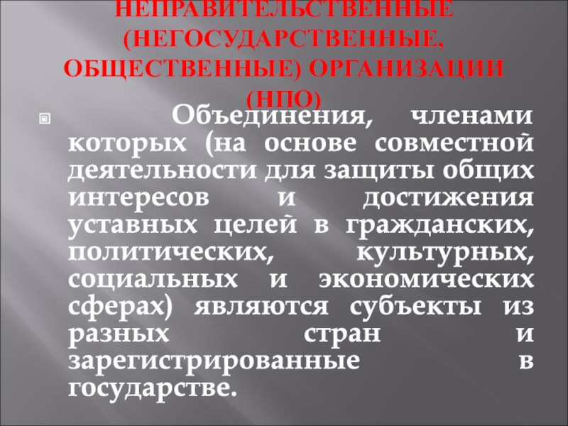 Слайд 6НЕПРАВИТЕЛЬСТВЕННЫЕ (НЕГОСУДАРСТВЕННЫЕ, ОБЩЕСТВЕННЫЕ) ОРГАНИЗАЦИИ (НПО)