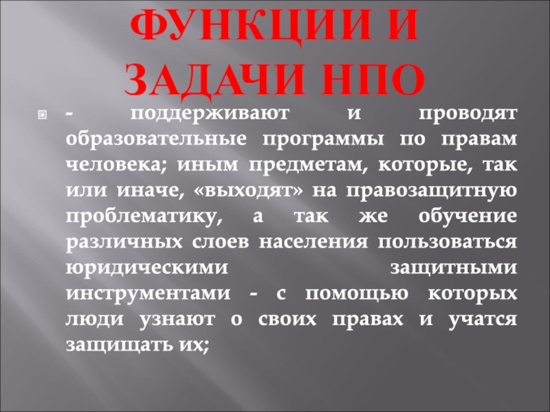 Слайд 9ФУНКЦИИ И ЗАДАЧИ НПО