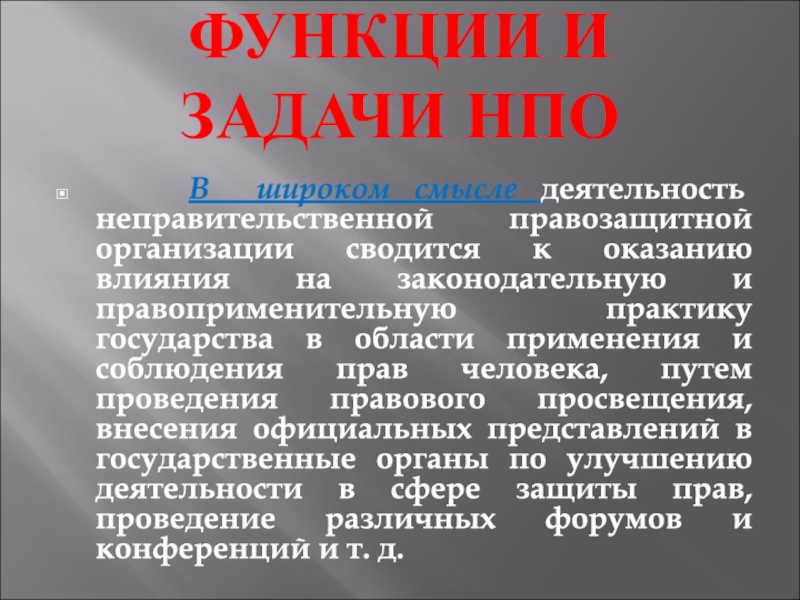 Слайд 18ФУНКЦИИ И ЗАДАЧИ НПО
