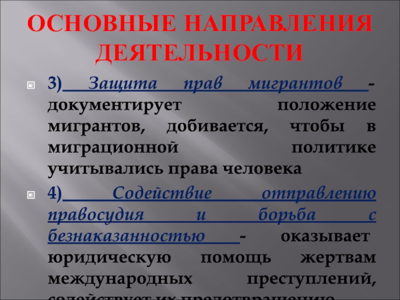 деятельности - мониторинг соблюдения прав человека (в том числе -
