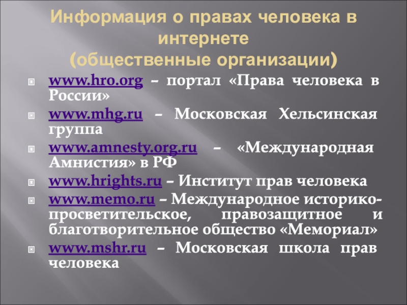 правам человека; иным предметам, которые, так или иначе, «выходят» на