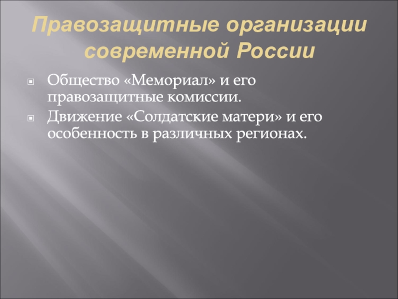 неправительственных правозащитных организаций лежат принципы солидарности, практической поддержке конкретных жертв;