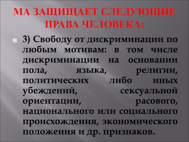 организации является: защита прав человека (бесплатная для заявителя) в конкретных