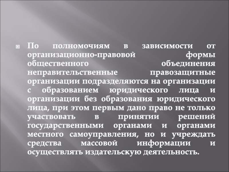 Международная неправительственная правозащитная организация (МНПО) - это общественная организация, деятельность