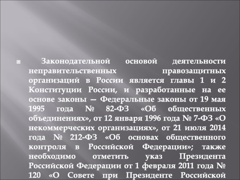 неправительственной правозащитной организации сводится к оказанию влияния на законодательную и