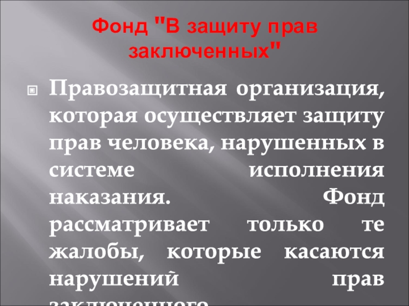 человека, нарушенных в системе исполнения наказания. Фонд рассматривает только те