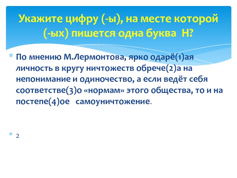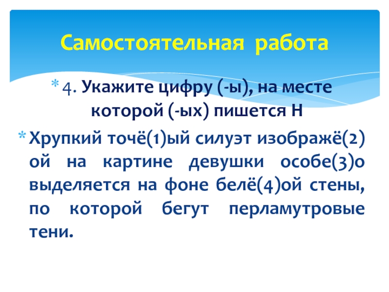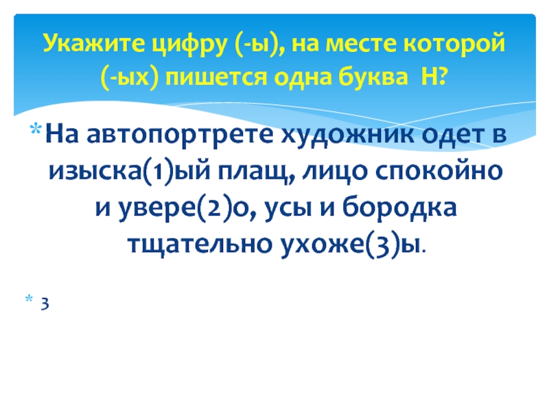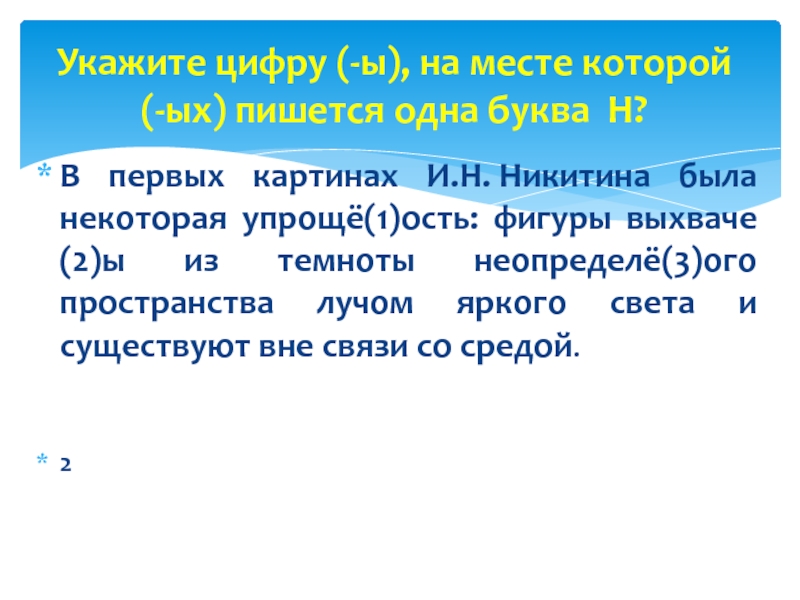 Укажите цифру (-ы), на месте которой (-ых) пишется одна буква Н?
