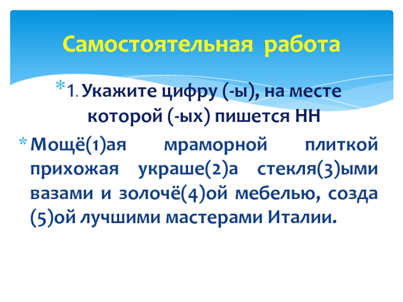 Укажите цифру (-ы), на месте которой (-ых) пишется НН