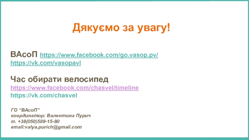 Дякуємо за увагу!  ВАсоП https://www.facebook.com/go.vasop.pv/ https://vk.com/vasopavl