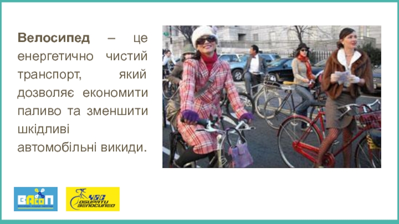 Слайд 5Велосипед – це енергетично чистий транспорт, який дозволяє економити паливо