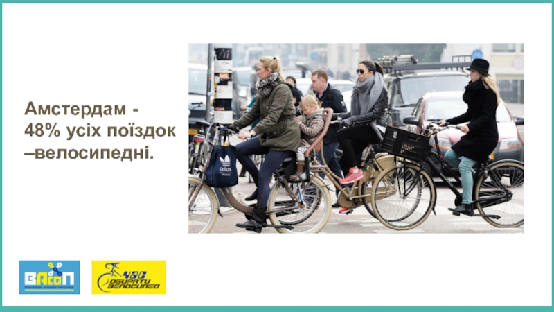 Слайд 10Амстердам - 48% усіх поїздок –велосипедні.