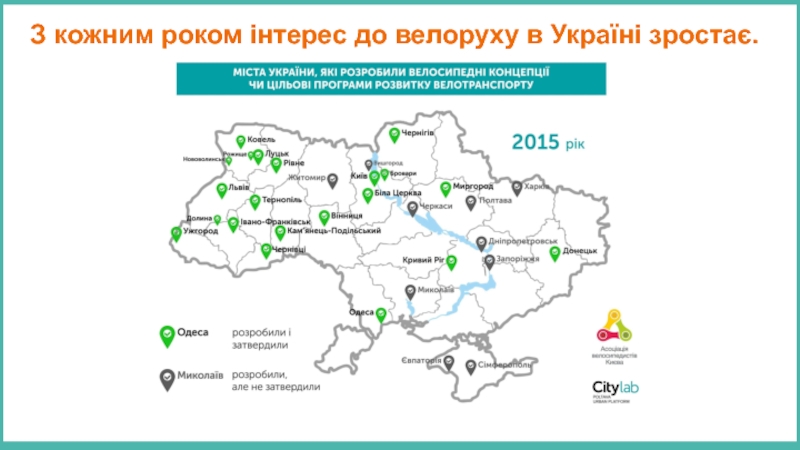 Слайд 11З кожним роком інтерес до велоруху в Україні зростає.