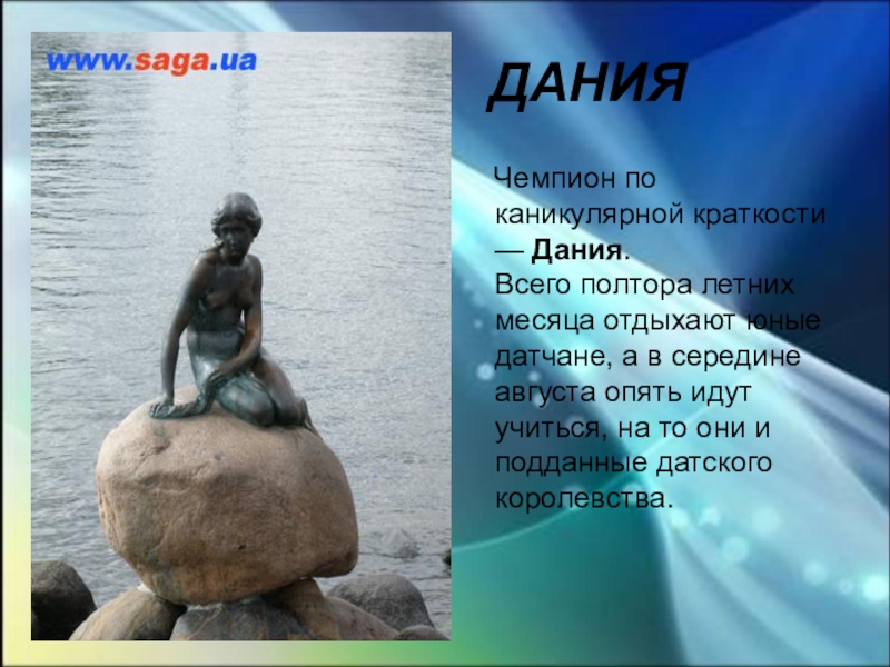 ДАНИЯ  Чемпион по каникулярной краткости —
