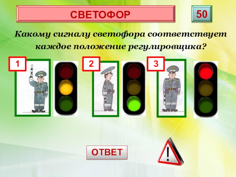 - запрещает движение, желтый мигающий разрешает движение и предупреждает об опасности.