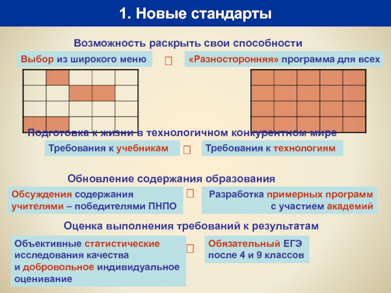 1. Новые стандарты Возможность раскрыть свои способности? Подготовка к жизни в технологичном конкурентном миреВыбор из широкого меню«Разносторонняя»