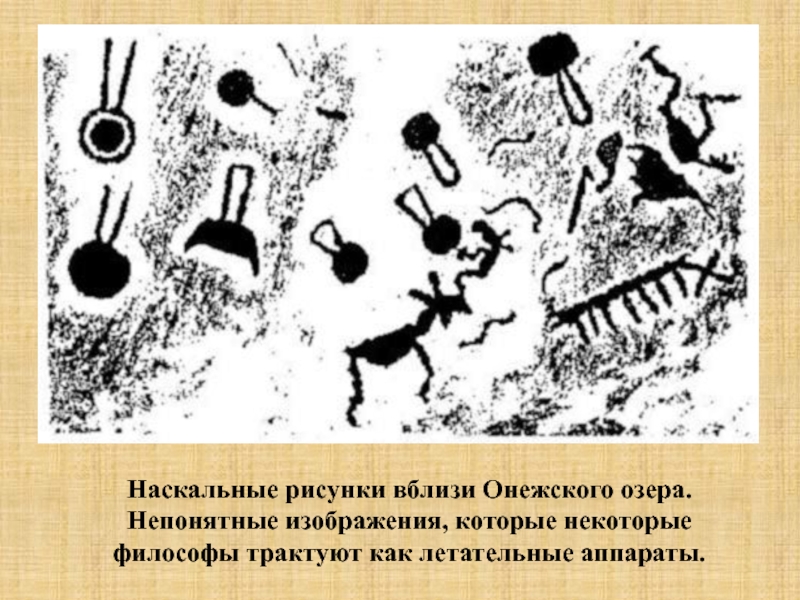 Слайд 26Наскальные рисунки вблизи Онежского озера. Непонятные изображения, которые некоторые философы