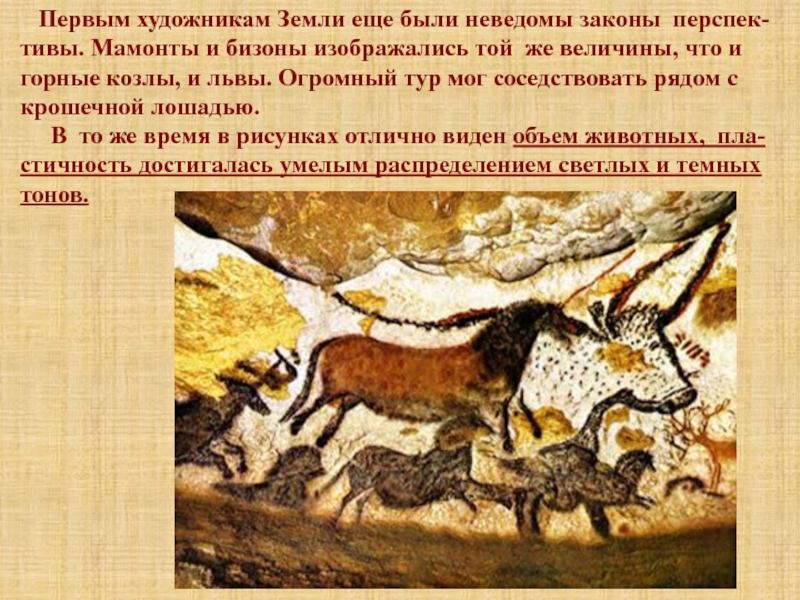 Слайд 8 Первым художникам Земли еще были неведомы законы перспек-тивы.