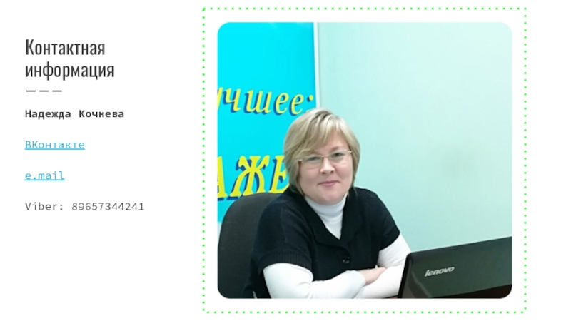 Контактная информацияНадежда КочневаВКонтактеe.mailViber: 89657344241