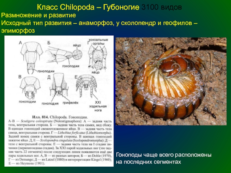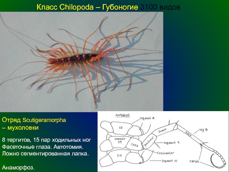 Слайд 13Класс Chilopoda – Губоногие 3100 видов