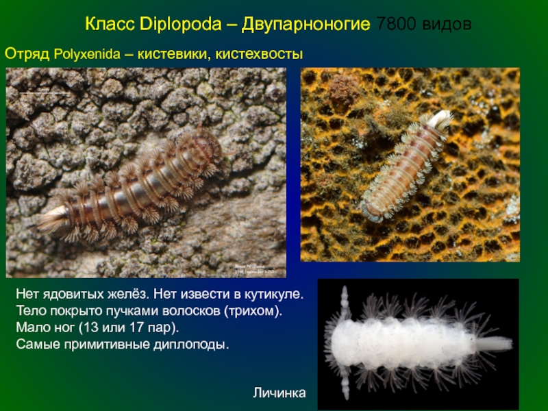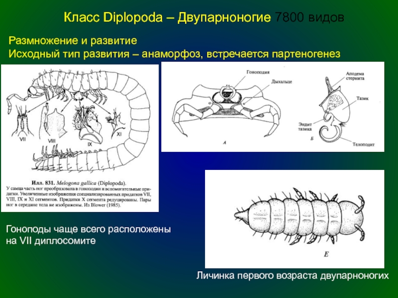 Слайд 7Класс Diplopoda – Двупарноногие 7800 видов