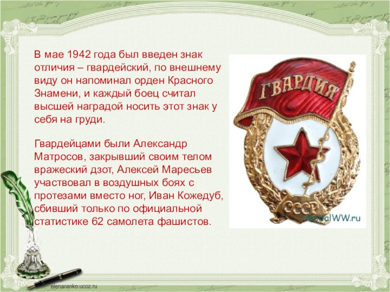 Слайд 5В мае 1942 года был введен знак отличия – гвардейский,