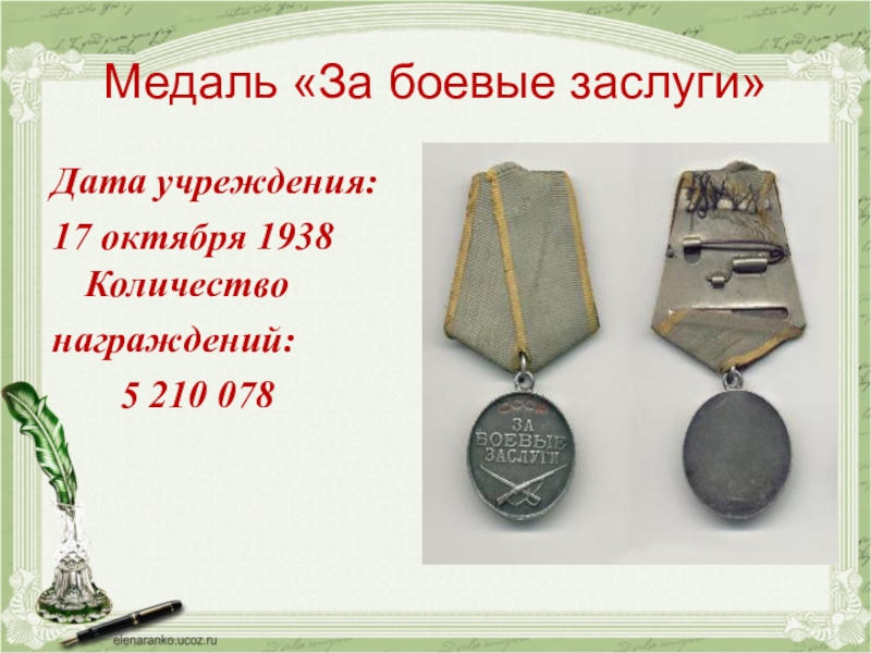 Слайд 33МЕДАЛЬ «ЗА БОЕВЫЕ ЗАСЛУГИ»