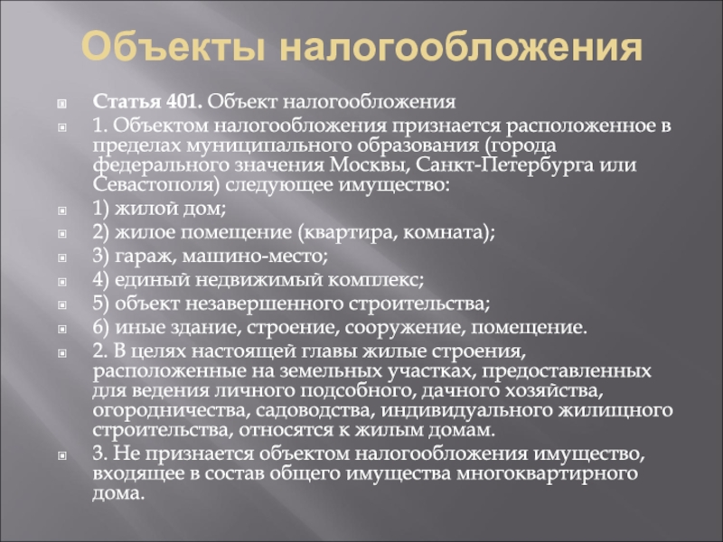 1. Объектом налогообложения признается расположенное в пределах муниципального