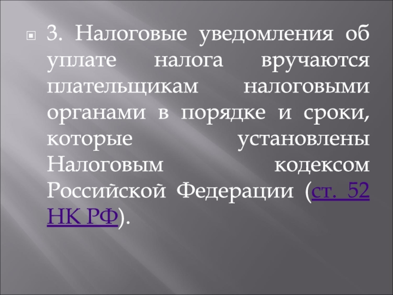 Слайд 103. Налоговые уведомления об уплате налога вручаются плательщикам налоговыми органами