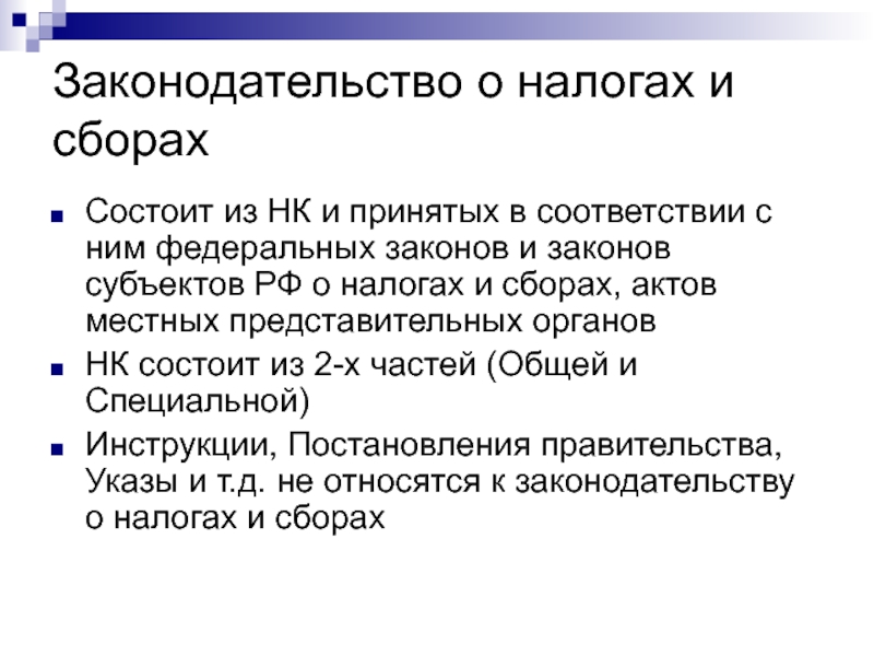Юридические принципы (установление налогов законами, приоритет налогового закона над