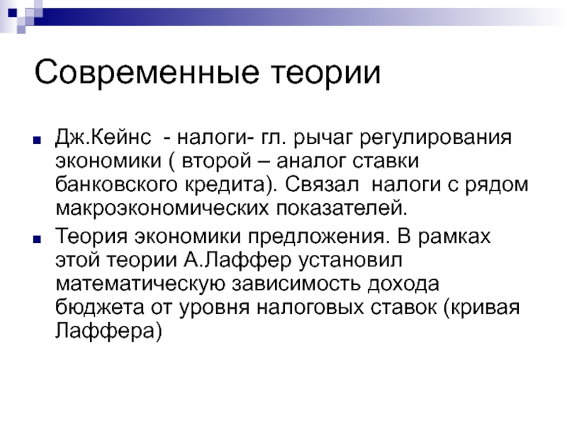 Современные теории(Дж.Кейнс, М.Фридман, М.Бернс, А.Лаффер)
