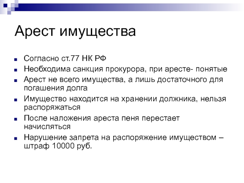 Нарушение запрета на распоряжение имуществом – штраф 10000 руб.