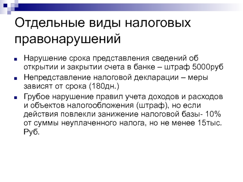 Грубое нарушение правил учета доходов и расходов и объектов налогообложения (штраф), но если действия повлекли занижение налоговой базы- 10% от суммы неуплаченного налога, но не менее 15тыс. Руб.