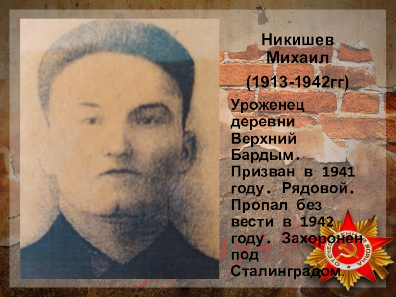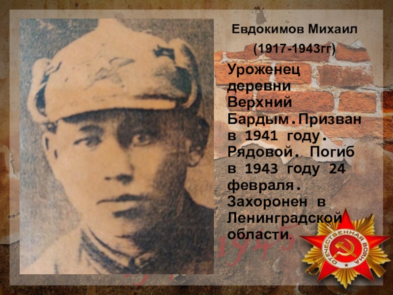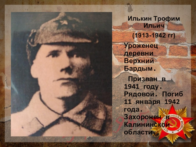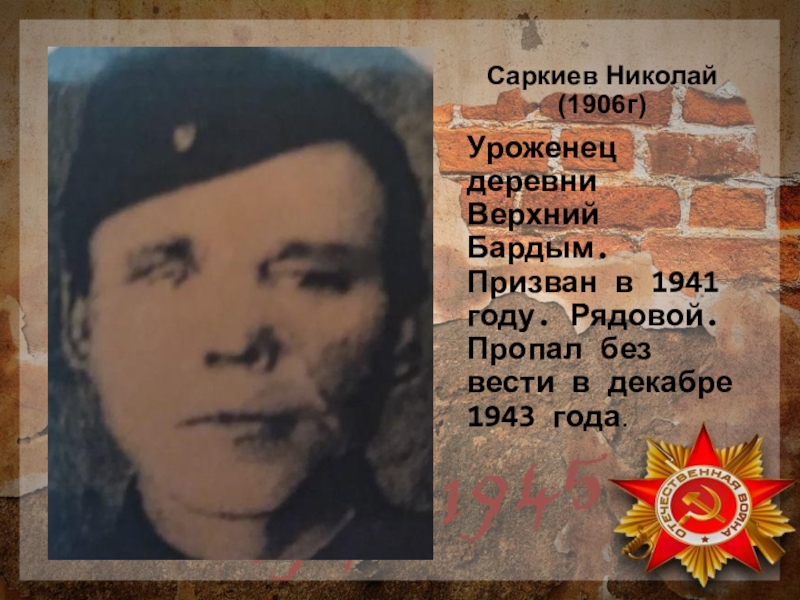 Уроженец деревни Верхний Бардым.Призван в действующую армию.