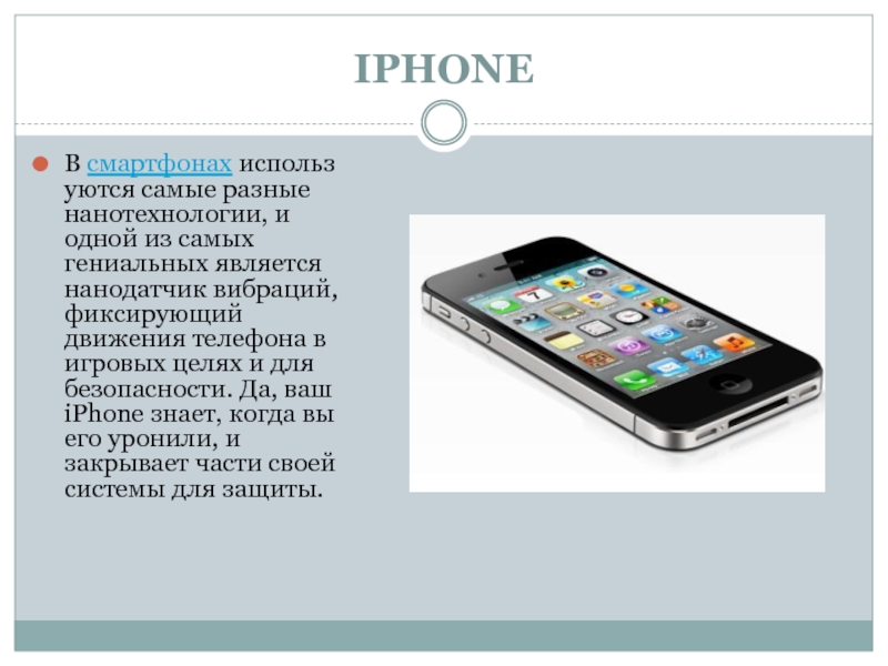 IPHONEВ смартфонах используются самые разные нанотехнологии, и одной из самых гениальных является нанодатчик вибраций, фиксирующий движения телефона в игровых
