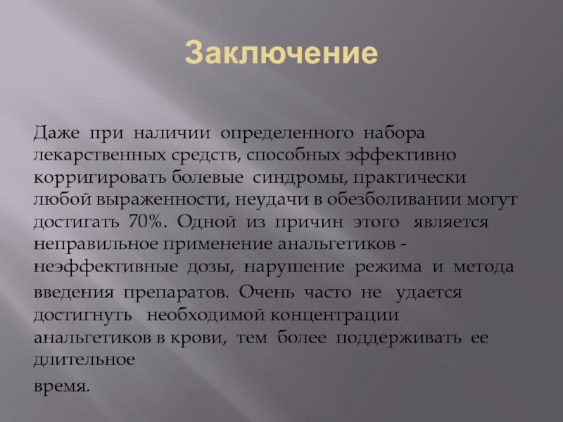 70%. Одной из причин этого является неправильное применение анальгетиков - неэффективные дозы, нарушение режима и метода