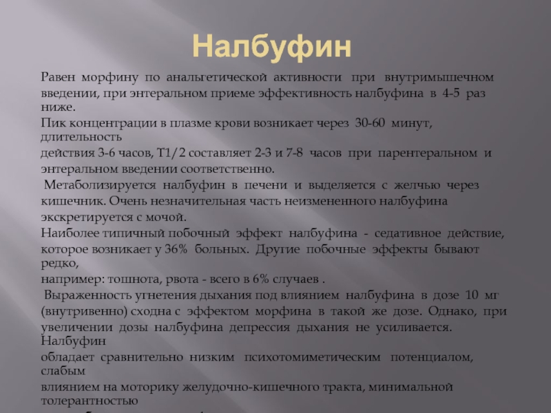 энтеральном приеме эффективность налбуфина в 4-5 раз ниже.