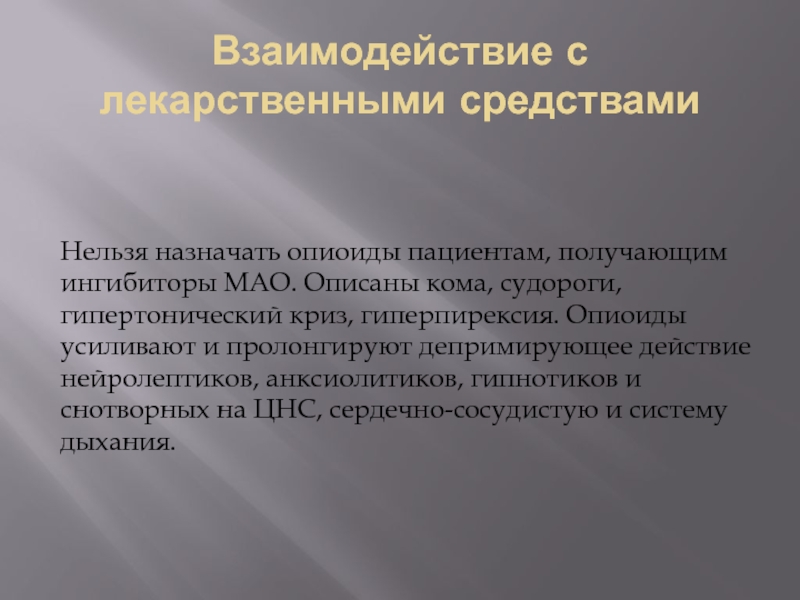 Нельзя назначать опиоиды пациентам, получающим ингибиторы МАО.