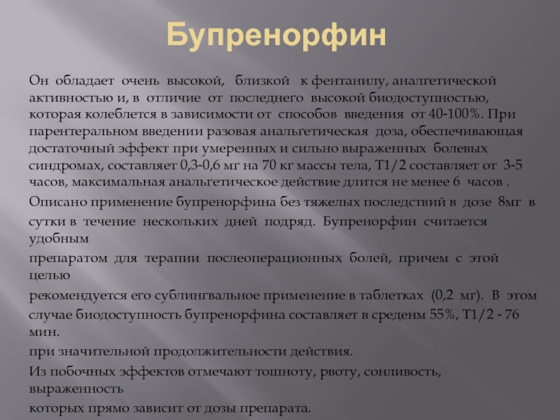 сутки в течение нескольких дней подряд. Бупренорфин считается удобным