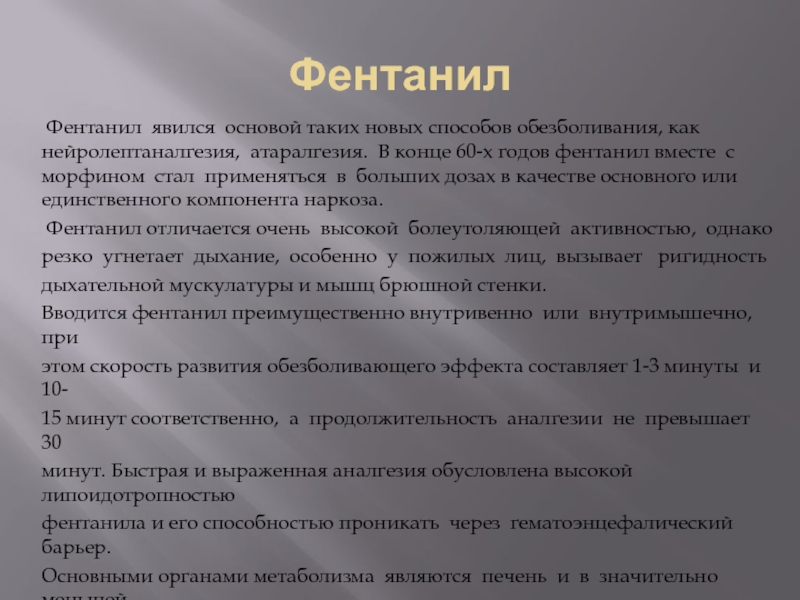 анальгетической активности в 5-10 раз. После внутривенного введения