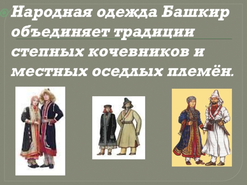 Слайд 8Народная одежда Башкир объединяет традиции степных кочевников и местных оседлых