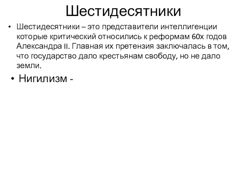 что государство дало крестьянам свободу, но не дало земли.Нигилизм -