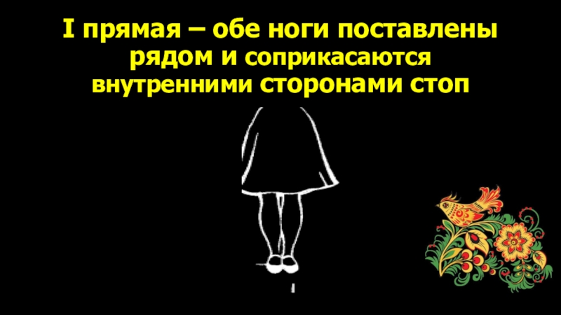 Слайд 9I прямая – обе ноги поставлены рядом и соприкасаются внутренними сторонами