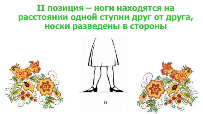 Слайд 4II позиция – ноги находятся на расстоянии одной ступни друг