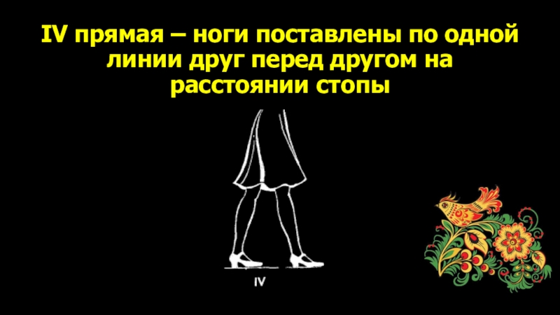 IV прямая – ноги поставлены по одной линии друг перед другом на  расстоянии стопы