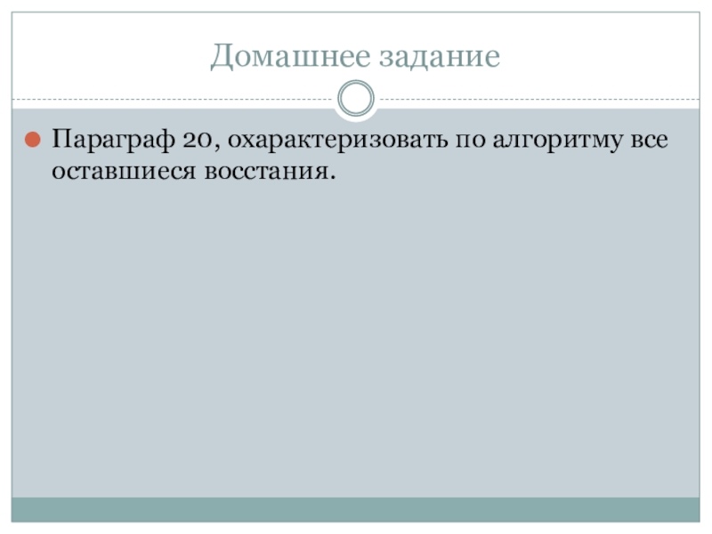 Параграф 20, охарактеризовать по алгоритму все оставшиеся восстания.